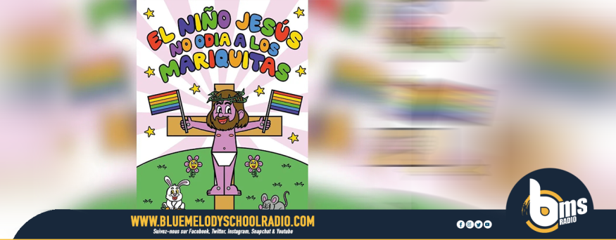 Intitulé El niño Jesus no odia à los mariquitas, que l’on pourrait traduire par « L’enfant Jésus ne déteste pas les tapettes », l’ouvrage porte sur sa couverture une illustration dans un style enfantin de Jésus sur sa croix, tenant un drapeau LGBT+ dans chaque main. A l’intérieur, on retrouve plusieurs « activités », ressemblant à des jeux pour enfant mais au contenu bien plus adulte.